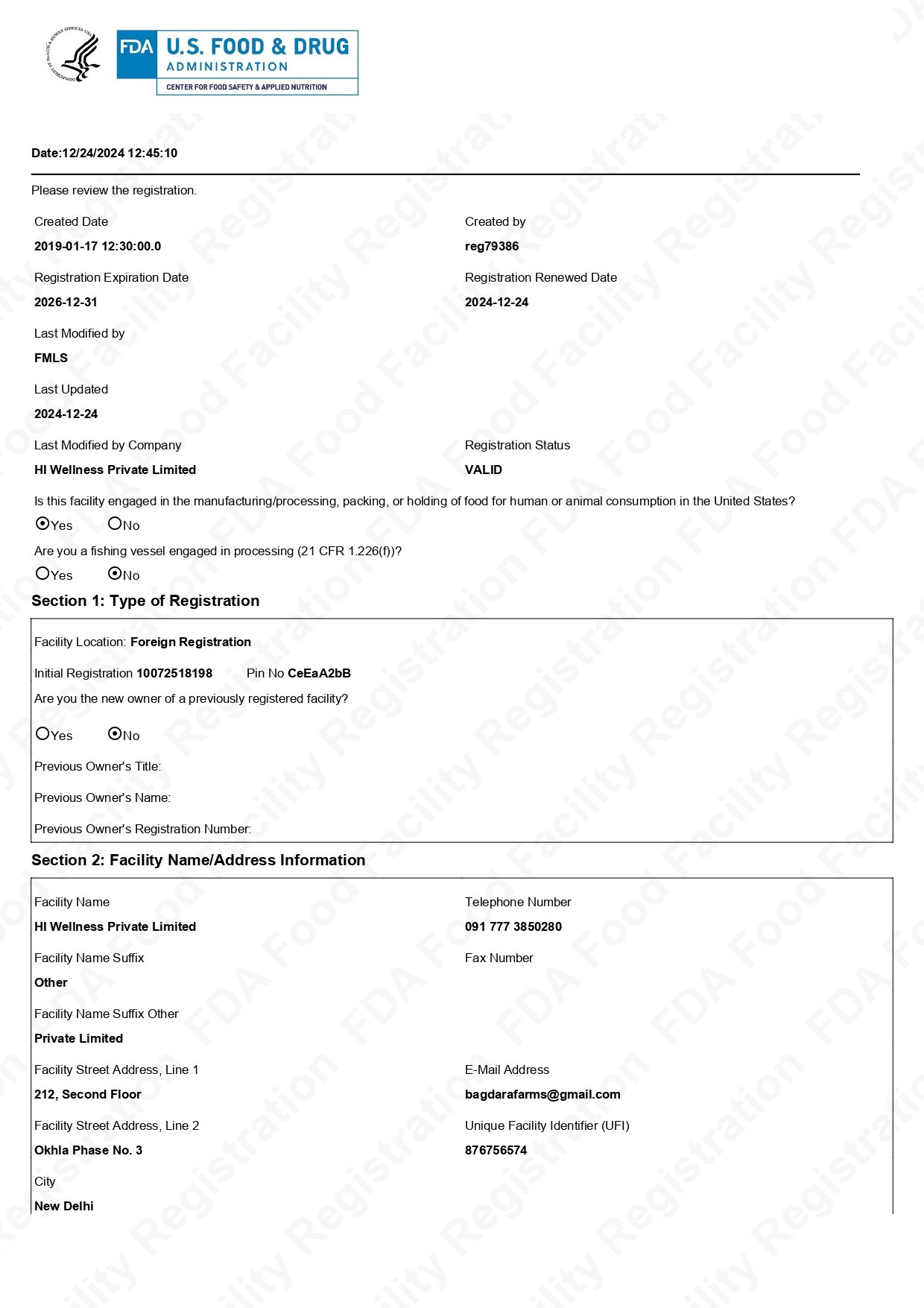 USA FDA Certificate